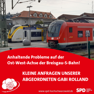Der Fahrgastbeirat Dreisamtal-Hochschwarzwald ist seit Einführung der neuen Triebwagen auf der Breisgau S-Bahn zwischen Kaiserstuhl und Höllental, wie auch auf der Dreiseenbahn mit massiven Beschwerden wegen zu kurzer und überfüllter oder gar komplett ausfallender Züge konfrontiert. Vor einigen Monaten beschlossen wir, uns an die Landespolitiker zu wenden. Auf mein Schreiben an die demokratischen LT-Fraktionen gab es zwar von allen eine höfliche Rückmeldung, aber offensichtlich nur unsere Landtagsabgeordnete Gabi Rolland hat sich in mehreren kleinen Anfragen der Missstände angenommen. Der Antwort des Verkehrsministeriums auf ihre erneute Kleine Anfrage vom Dezember 2023 ist zu entnehmen, dass